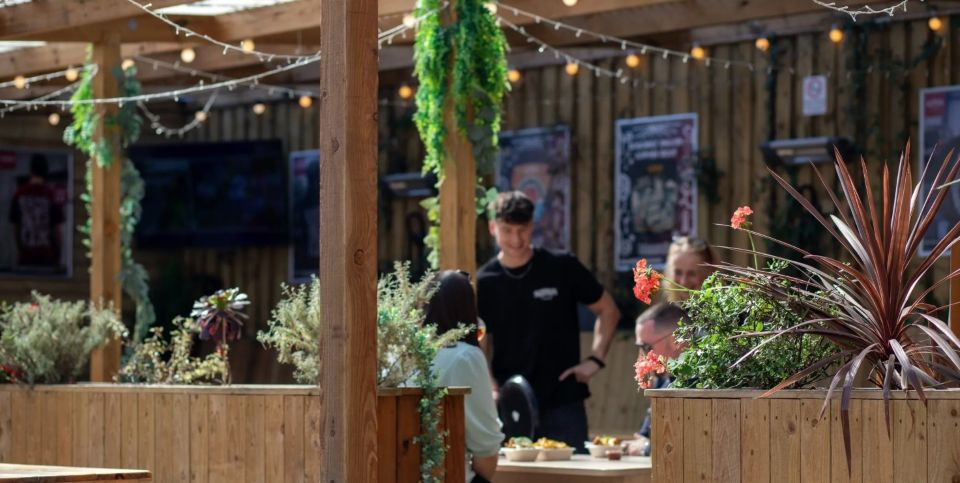 With their traditional indoor bar, large communal tables, cosy quiet corners, and plenty of shade among the wood cladding and green planters, The Tapyard in Truro is the perfect place for family and friends to meet. Located in an accessible spot on the edge of the city, they’re proud to be wheelchair friendly, making it easy for everyone to relax and enjoy their visit. And if that friend is four-legged, even better we’re dog friendly too.